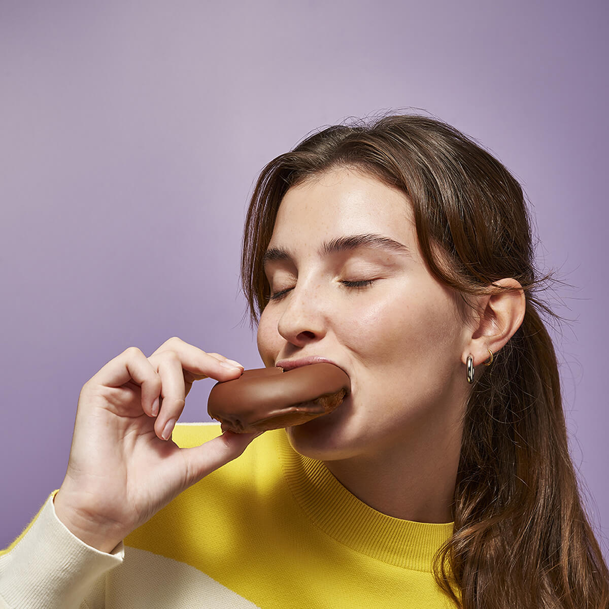 Exprime todo el sabor y tentación del cacao gracias a la cobertura sabor chocolate de este Donuts®.